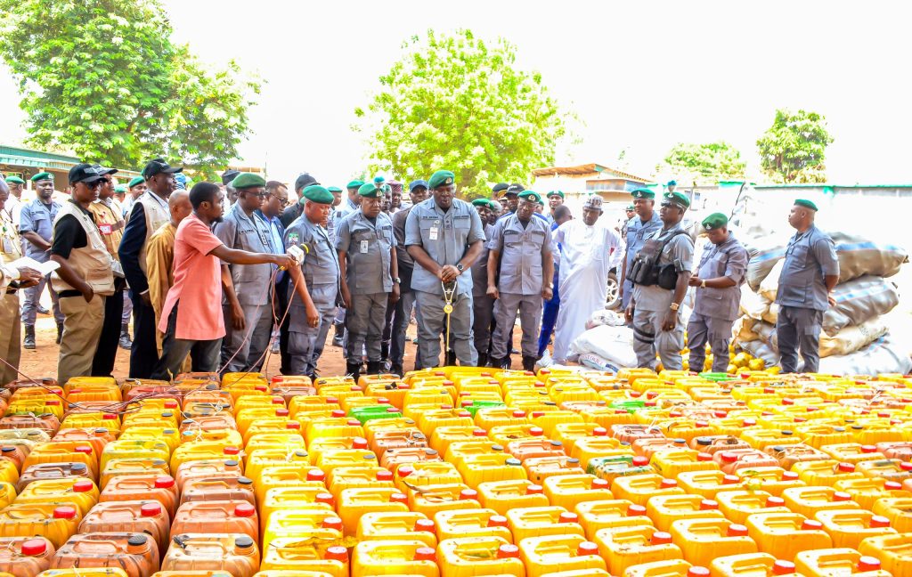 Items intercepted included 22,725 bags of foreign parboiled rice, 2,669 kegs of premium motor spirit, 2,128 cartridges, 13,332 parcels of cannabis sativa, used clothing, foreign used vehicles and tractors, tyres, vegetable oil, tomato paste, sugar, insecticides, spaghetti, explosives, firearms, heroin and motorcycles used as means of conveyance.